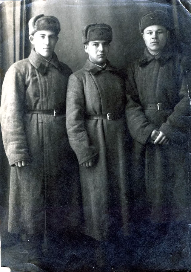 My brother Klim Poliak and his comrades. Klim is in the center. This picture was made on 23 February 1942. Signed:" To brother Nyuma for the long and kind memory. Days of the war with the German fascism. Your Klim".