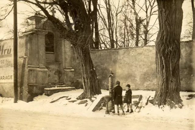 Across the street from our house in Brandys nad Labem, where today stand socialist prefab apartment buildings, once used to stand an old linden tree, under it a pump and behind it a wall that surrounded a large garden. There was a tiny chapel built by that wall. I remember that before the war there used to be a procession from Prague to Stara Boleslav that used to walk through Brandys every Sunday. The pilgrims would always wake us up in the morning, when they would sing "A thousand times we greet thee" and because they had to walk a long ways, they would stop under the linden tree by the chapel, have a drink of water, wash their feet and rest.