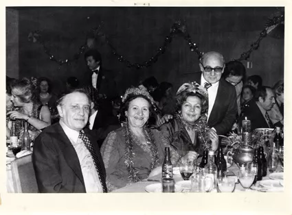 This photograph was taken in Maçka hotel on a new year’s eve, I do not remember the date. There was a famous singer, used to sing songs in French, an old singer, I do not remember the name. The ones in the photograph, me, Ceni, Zelda and Yomtov. That night we had a lot of fun, danced, ate till the morning, had a lot of fun and that’s it.