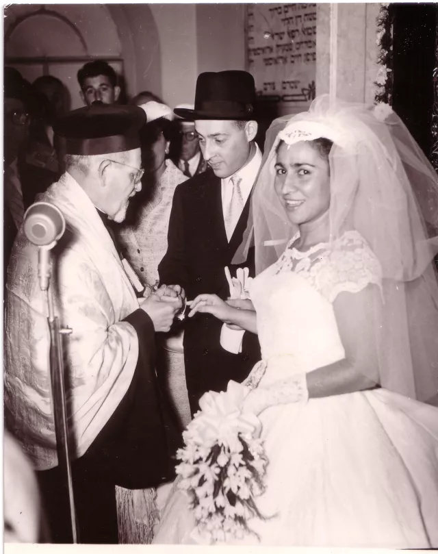 This is a photo from my wedding. The name of the rabbi was Pessah and he was from Veroia. The picture was taken in Thessaloniki in 1957.