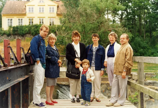 This is my family in Sweden. From the left: my son Witek, my wife Henryka, my daughter Ewa, her son, Bartek, my daughter-in-law Val, her mother and me. The photo was taken in Uppsala in 1990.