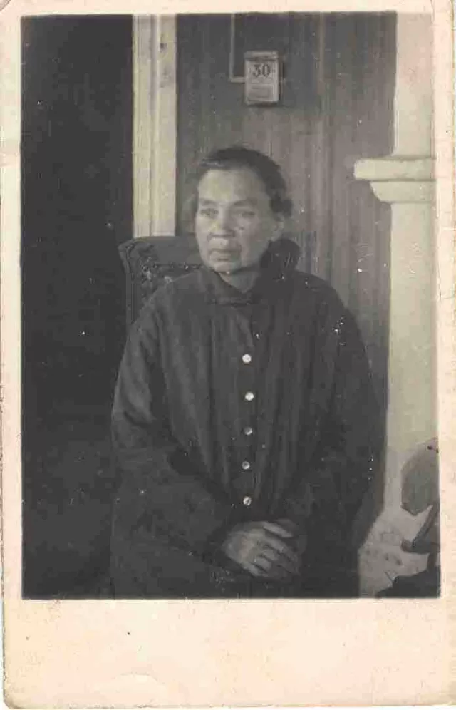 This snapshot was taken in the mid-1930s, shortly before her death, in Bryansk, in the house of her elder son Semen, with whom she lived after arriving from Mglin, Chernigov province. At the time of the photo she was about 74-75 years old.