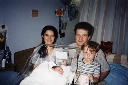 This is the family of Nikolay Mladenov (1973), Ani's elder son in Canada. Next to his wife Stanislava are their children: Anton (the baby in the cradle, born in 2001) and Mladen (1996).