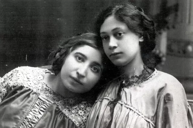 Anna Lutrovnik, grandmother Bertha's younger sister on the right and her friend. Photo made in Voznesensk in 1914 after Anna returned to Paris after WWI.