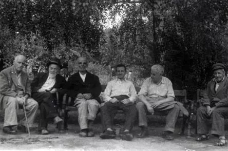 This is a photo taken in the park around the nearby church 'St Nikola' in Sofia in the 1960s. My grandfather and my father liked to spend their time in that park. My father Mihael Kohen is third from left to right on the photo.