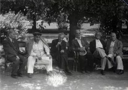This is a photo taken in the park around the nearby church 'St Nikola' in Sofia in the 1960s. It was often visited by our family. My grandfather Nissim Kohen often went in the park. The photo shows my father Mihael Kohen - third from right to left. The other people are friends of his.