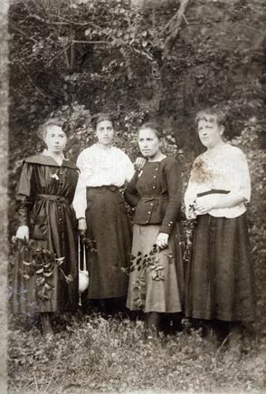 This is a photo of my mother Sarina Haravon with friends. My mother is around 20 years old here. She is the first on the right. The photo was taken in 1920 in Kyustendil. My mother lived with her parents. Their house was on a small square, in the middle of which there was a fountain tap with hot water running.
