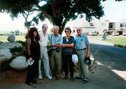 I am the in center, and next to me is my wife Katarina. Standing next to me on the other side is my friend Eugen Cajzler, and next to him is his wife, she is Israeli. This was the first time that we met after the war was over.