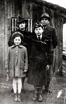This is my family in 1942. The picture was taken in front of our house: my mother, my father, my sister and me are standing in front of our house.