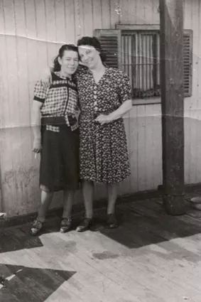 This picture was taken in 1944 on coal pontoon No. 3 in the Bratislava harbor. Standing on the left is Mrs. Zatkova, and beside her is my mother, Helena.