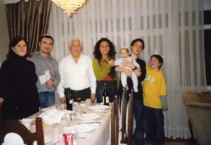 This photograph was taken 4 months ago. From the left, my daughter-in-law Emili Özlevi, my son Yusuf Özlevi, myself, my daugthter Çela Özlevi, my oldest grandson, younger grandsons from my son Eran Özlevi,and Alp Özlevi.