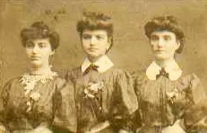 This picture was taken in Iasi in the 1900s. In the middle of this photo is my grandmother, Paula Perla Iancu, when she was a schoolgirl. The other two girls are her schoolmates. They wear uniforms and collars.