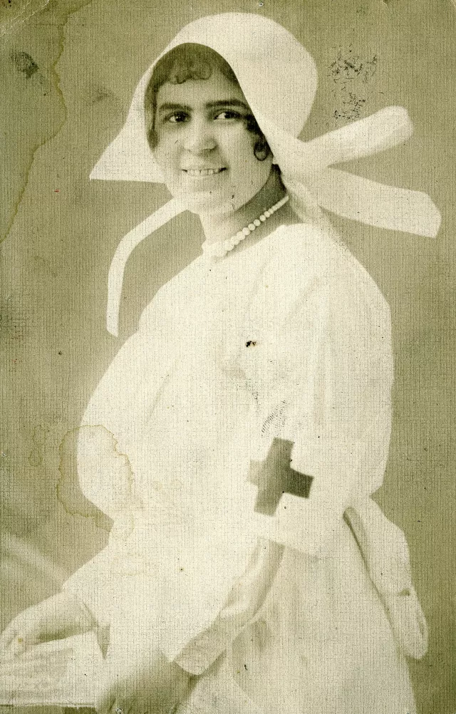 This is my mother Paula Schosberger. This photo was taken in 1914 in Rakospalota where she lived. During the First World War she worked as a nurse in a military hospital near Budapest. When war ended she recived golden badge from the Red Cross organization.