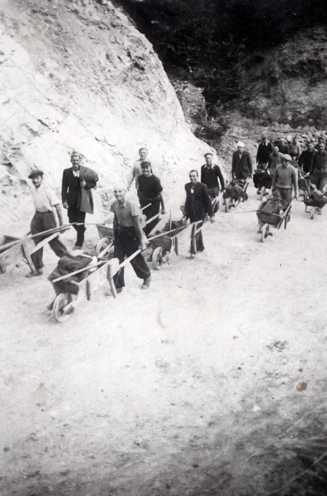 This is a photo of my husband Pepo Kohen (the fourth from the left) among fellow workers in a labor camp.