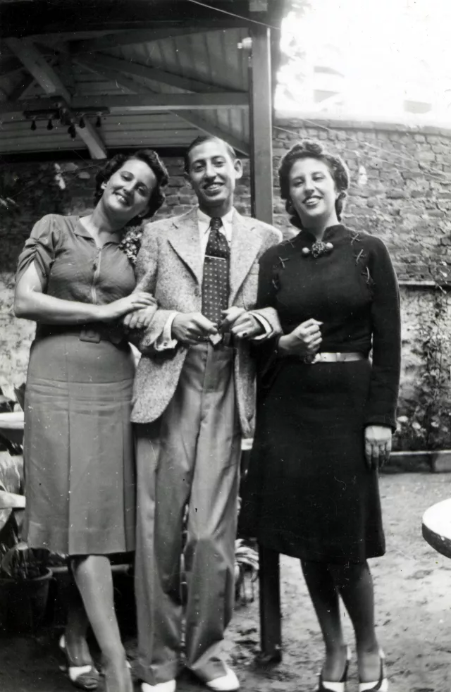 This photo was taken in 1940. While I was in Spain, my parents had moved from Ortakoy to a house in Galata. Therefore, when I came back, I went to live with my parents in Galata. The place was called “Galata, Kücük Hendek”. The apartment had a garden and a pergola. One day my second cousins on my mother’s side came to visit us from England. They were two sisters, one of them was Gladys on my left here. I don’t remember the name of the other one. A friend of mine took this picture as a souvenir. The two sisters returned to England after that and I never heard from them again.