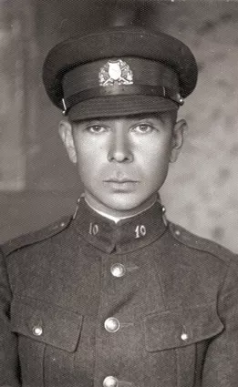 This is my uncle, my mother's younger brother, Pavel or Pesach Meyertal, during involuntary service in the army. Pavel sent that picture to Mother. The photo was taken in 1937.