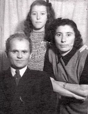 From left to right in this photo: my stepfather Harold Kuuzik, me, and my mother Hana Marjenburger. This photo was taken in a photo shop in Tallinn in 1949.