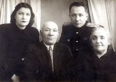 This photograph was taken in 1952 in Leningrad. Here you can see my mother, my father, my brother and me. Mom got ill in 1952 and died in 1953.