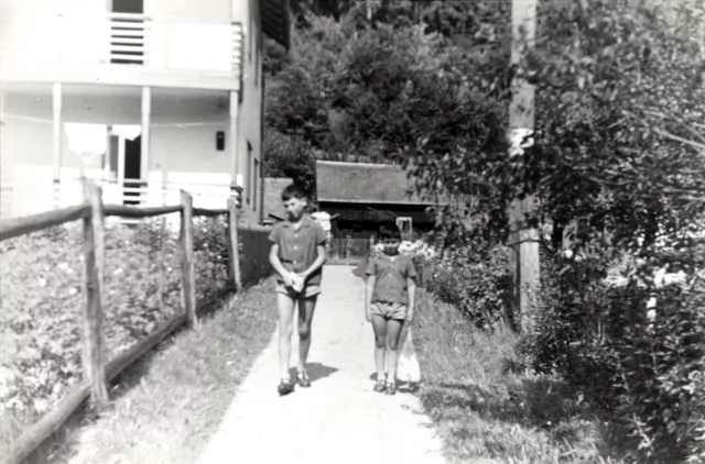 This is a picture of my sons, Peter and Gyorgy Kallos, taken at the end of the 1960s in Tusnad. Behind them, on the left, is the house where we were staying. We always rented the same house when we went there on our summer holiday.