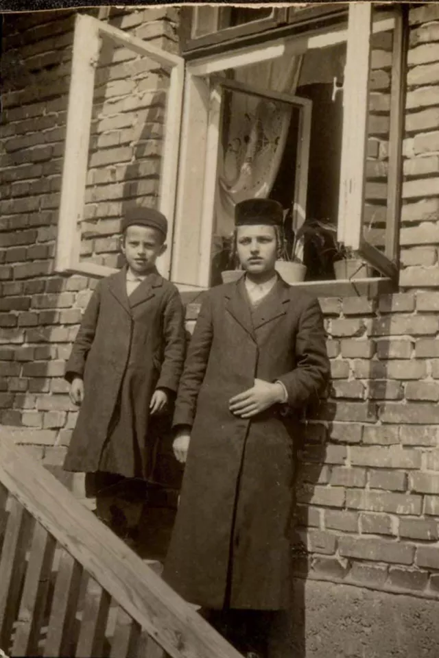 So, in this photograph at far right is that uncle of mine, Schlomo Königsberg, who took me away from Bochnia back then. Beside him is his brother David, who however didn't survive. I unfortunately don't know where and when this photo was taken.