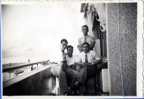 The other people in the photograph: Next to me Filo Ovadya, who is deceased today, whose wife is still our best friend, behind him standing, Leon Behar, who is a university professor now, seated on my lap, Ezra Papo. These are all my best friends.