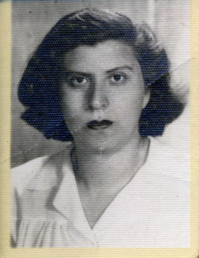 My older sister Elvir, who was born in1917 and raised in Balat finished Saint Benoit like the rest of us and spoke French as well as a French person. In 1942, she married a Bulgarian Jew who was a drummer in Zülfaris Synagogue [in Istanbul, on the European side, where the Jewish museum is located now], unfortunately this marriage did not last long, they stayed married for only one year and separated; they did not have children. Following this experience, my very sensitive older sister unfortunately became schisophrenic, she was constantly in poor health, and would be cared for. The last 15 years of her life were spent in "La Paix" [Private psychiatric hospital then and now].Together with my older sister Ester, we would take Elvir out on those weekends when she was relatively better and when the doctor gave permission, sometimes we took her to the movies. My older sister had this photograph taken in 1948. We unfortunately lost her in 1957. We buried her in Hasköy where a lot of olur family members rest.