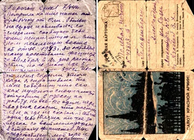 Post-card, sent to Adolf Goldenberg by Zulfia Khalilova, Alexander Goldenberg's wife.