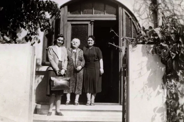 This photograph was taken in 1940 in Bucharest, in front of our house on Turbinei Street. From left to right: my sister, Mira Cotin [nee Mizrahy], my maternal grandmother, Rachel Schonfeld [nee Friedman], and a distant relative, Ana Schwartz.