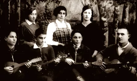 This is our college band where I sang. I am the first from the left in the upper row. This photo was taken in Poltava, USSR, in 1938.