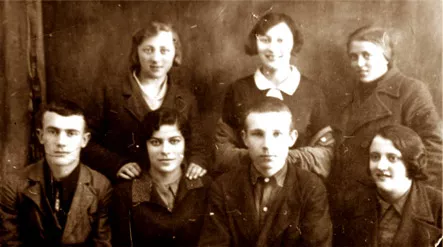 This is our school choir where I used to sing. I am the first from the right standing with my schoolmates. This photo was taken in Ananiev in 1938.