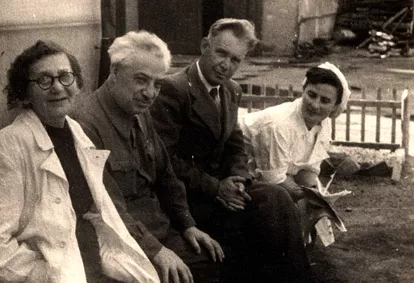 The picture was made in Moscow in 1948 in the yard of the hospital, where I worked. From left to right: ophthalmologist Frida Yoffe; physiotherapist (I do not remember his name); deputy chief therapist physician Alexander Ivanov, who was the head of the hospital, where I served during war and I.