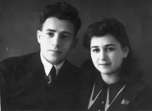 My wife Ida and I, Rahmil Shmushkevich, after our wedding ceremony. Photo made in Kiev in November 1946.