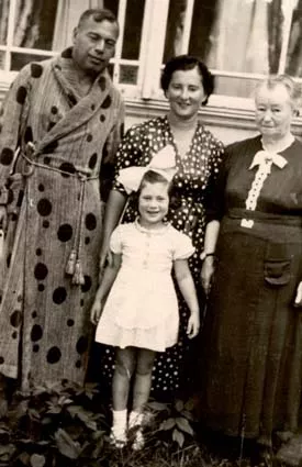 This photo was taken shortly before the war, in early June 1941. Mama went to Riga to visit her younger daughter Raya’s family. They were photographed in the yard. From left to right: Raya’s husband Kolia Gorosh, Raya, their daughter Efros and our mother, Ida Kaplan. This photo was taken in Riga in 1941. We did not know then that we would see Raya and her family for the last time. My sisters and their families perished in the Riga ghetto in 1941.