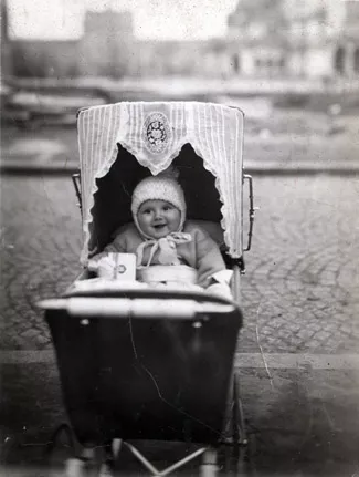 Here I am as a baby. There is no stamp of a photo shop on the back. The photo looks like a postcard - there is an inscription - CARTE POSTALE - on the back.
