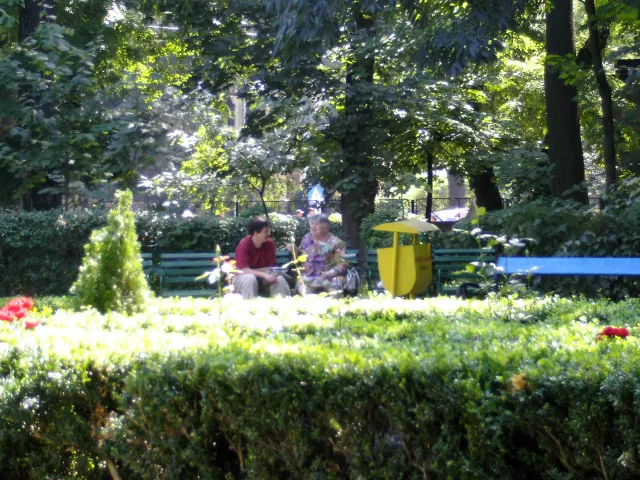 [Editor’s note: This is a picture taken clandestinely in the Public Garden in Botosani in 2006, during a meeting between Mrs. Rifca Segal and interviewer Emoke Major.]