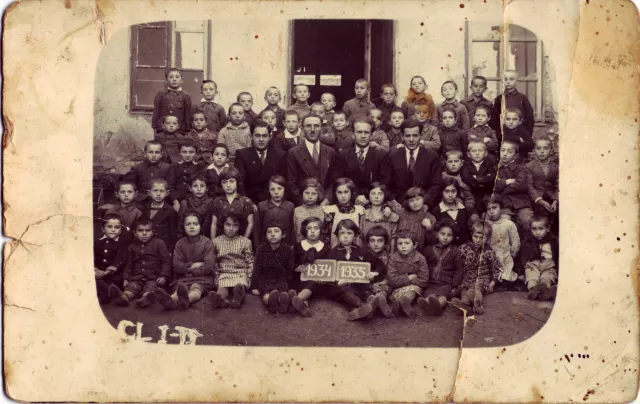 These are the first and second grades of the elementary school where I studied in Sulita. I went to the Jewish school for four years. I, Rifca Segal, am the fifth from right to left in the front row, the one holding the plate that reads “1935”. I see I was wearing my wool outfit. I was in the first grade, so I was 7. The girl to the left, who holds the “1934”, is Sonia Zinger, the daughter of our teacher, Mr. Zinger. I was the best student in the first grade and Sonia was the best in the second grade – which is why we were chosen to hold those plates. I’m bragging a bit. We were the center of attention. Well, after we split, life was harsh on us. I don’t know what became of her. Her father, who taught Ivrit, is one of the four teachers – the second from left to right. To the right there’s Goldenberg, to the left there’s Balter, and the fourth, I forgot his name. Zinger only taught Ivrit, while the others taught all the subjects. I studied with Goldenberg from the first grade to the fourth – he taught all the subjects except for Ivrit, which was Zinger’s specialty. Girls weren’t separated from boys. But, should you ask me the names of my fellow students in elementary school, I couldn’t tell you. It’s impossible to remember. I can’t even recognize them any more. I remember one name, Burah Kohn; he also lives in Botosani and he went to school with me. But I can’t tell him apart. I am really fond of this picture and I am sorry to see it deteriorate with the passage of time…