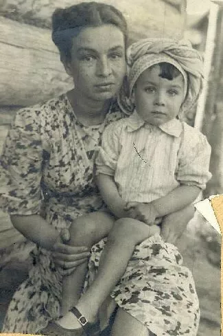 This photo was taken in Kartashevka in the middle of the 1940s, after my son was born. Here you see me, Rita Razumovskaya and my son Alexei Razumovsky. This photo has its own history. Somehow I found the portrait of Pushkin's daughter Natalia. And she looked like me! So I put a copy of her portrait on my pass to Hermitage and used it for many years. And on this certain photo of the 1940s I have the same face as Pushkin's daughter.