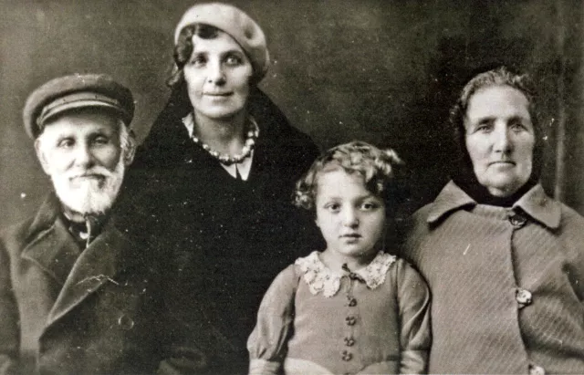 From left to right: my maternal grandfather Iechiel Aria Jashinskiy, my mother Riva Klug, my younger sister Miriam and my grandmother Leya Jashinskaya. The picture was made in Ukrmerge in 1935.