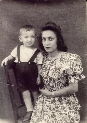 This is me with my older son Igor. Igor turned 2. I sent this photo to my husband Aron in the army. This photo was taken in Mogilyov-Podolskiy in 1954.