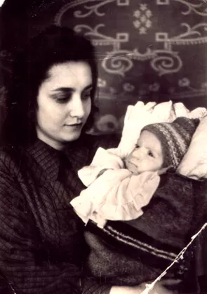 This is me with my older son Igor. He turned 3 months. Igor was born, when my husband Aron was in active military service in the army, and I sent him all of my son's photos. This photo was taken in Mogilyov-Podolskiy in 1949.