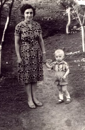 This is me, Riva Pizman, having a stroll with my younger son Mikhail. My husband Aron photographed us in the town park. This photo was taken in Mogilyov-Podolskiy in 1964.