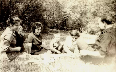 We had this photograph taken, when we were having a stroll along the Dnestr River, when my older sister Anna came to visit us. From left to right: my sister Anna Nudrina with her daughter Vera; this is me, Riva Pizman, my sons: younger Mikhail and older Igor, my husband Aron Pizman. This photo was taken in Mogilyov-Podolskiy in 1965.