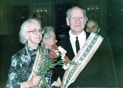This is my husband, Gutman Smerkovicius, and I, Riva Smerkoviciene. The picture was taken in Kaunas on our golden wedding anniversary in 1990. The official ceremonious celebration was held in the marriage registry office.