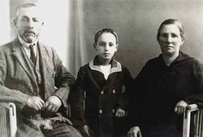 This is father's sister Rohl Gefin, her husband Sholom Gefin and son Jacob. The picture was made in Kaunas in late 1930s.