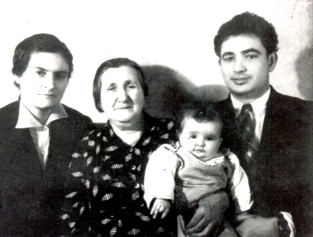 In the center is my grandfather Bencion's second wife Rosa, my father's brother Moishe, on the left is his wife and child. The photo was taken in 1960 in Tomashpol.