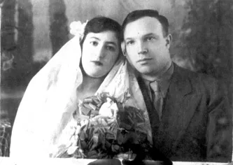 This is our wedding. My husband Oscar and I, Rosa Vexler, nee Abramson in 1944 in Serebrinets. We got married in Serebrinets after we were freed from the ghetto. On the following day my husband had to go to the front and he insisted that we got married.