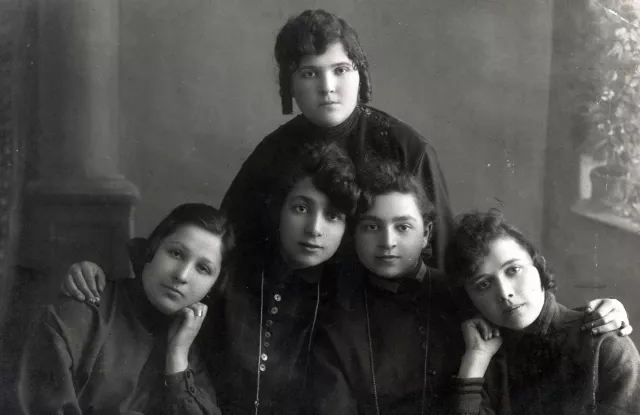 In 1941 together with little Zinaida aged 18 months she left for the summer-house in Rogachyov to join her parents, and she was executed there together with her child in front of her father and mother. The three other girls, two sitting to the left and one standing, are Mother's friends. They spent most of their free time together since school years and shared all the secrets. Unfortunately, I don’t know their names or other details.