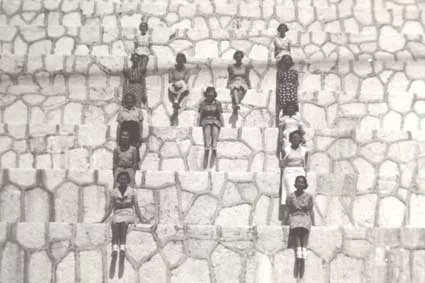 This photograph was taken in 1939. On this day we had gone on an excursion to Athens from Thessaloniki with my school, the American, or Anatolia College. Every year the graduating students of Anatolia went on this excursion for an entire week in order to visit the capital of Greece. As you can see we have formed the letter M with our positions because we were at the dam of Lake Marathon. It is an artificial lake that was created in order to supply Athens with water.