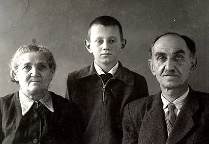 My parents with their favorite grandson. My son Sasha is 10 here. The photo was taken in Kharkov in 1952.