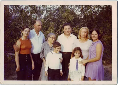 Here I am, Simon Meer, the third from the right with my aunt, Ruhla Butnaru, who is the third from the left and my brother Iacov’s family.